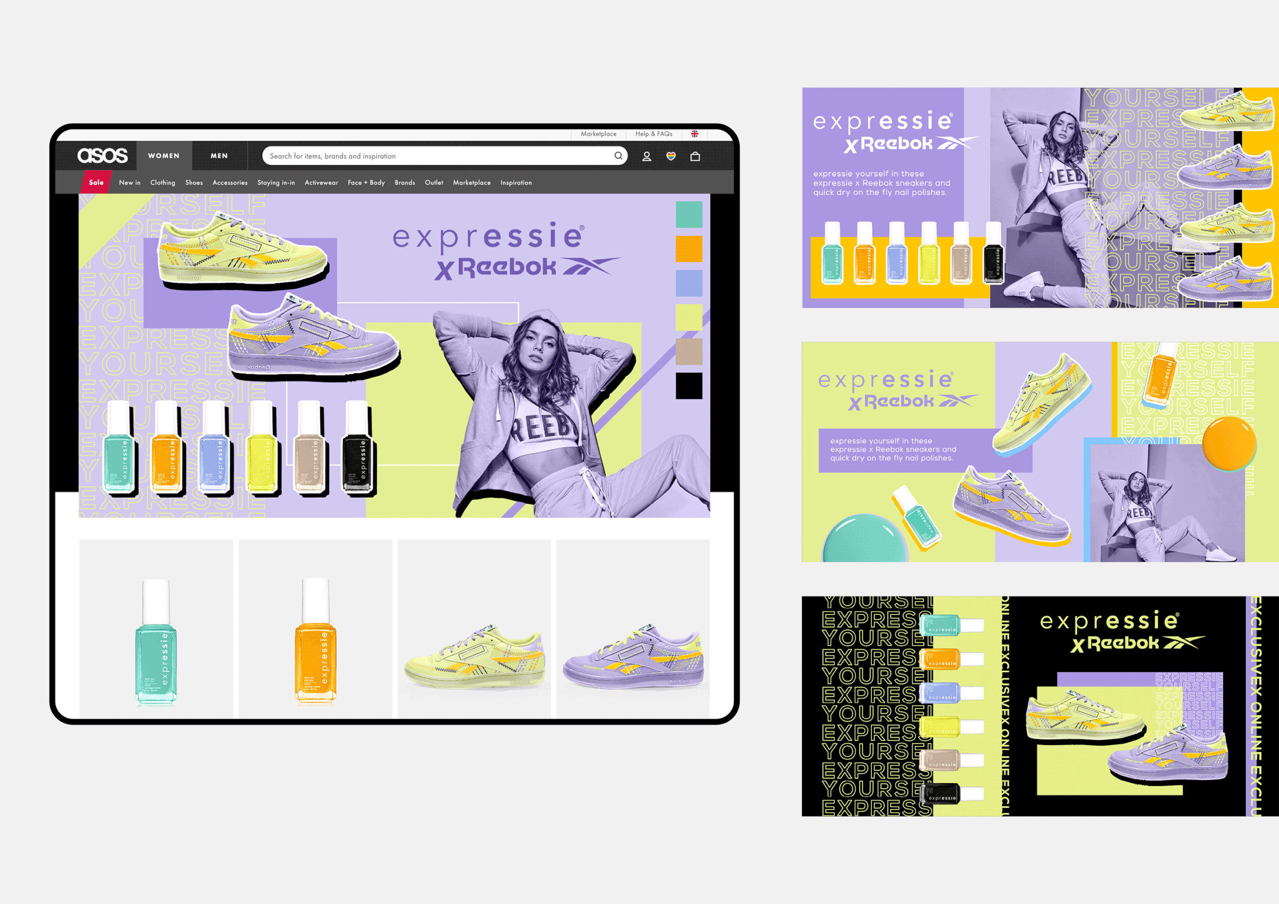 For Essie, I created a range of assets spanning onsite banners, launch content, and concept visuals for marketing proposals. The brand’s playful, colour-obsessed aesthetic was a joy to work with. A highlight being the Essie Obsessie logo and web banners, designed to celebrate the brand’s fan community and social following.